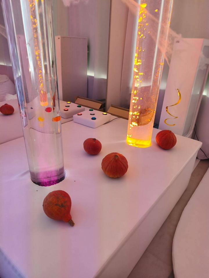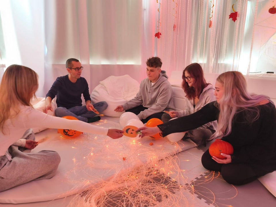 ,,Święto dyni i Halloween w Sali Doświadczania Świata" to propozycja zajęć dla naszej młodzieży, które łączą zabawę i naukę, odwołując się do tradycji Halloween i symboliki dyni. W ramach warsztatów terapeuci organizują aktywności w iście klimatycznej halloweenowej atmosferze.🎃